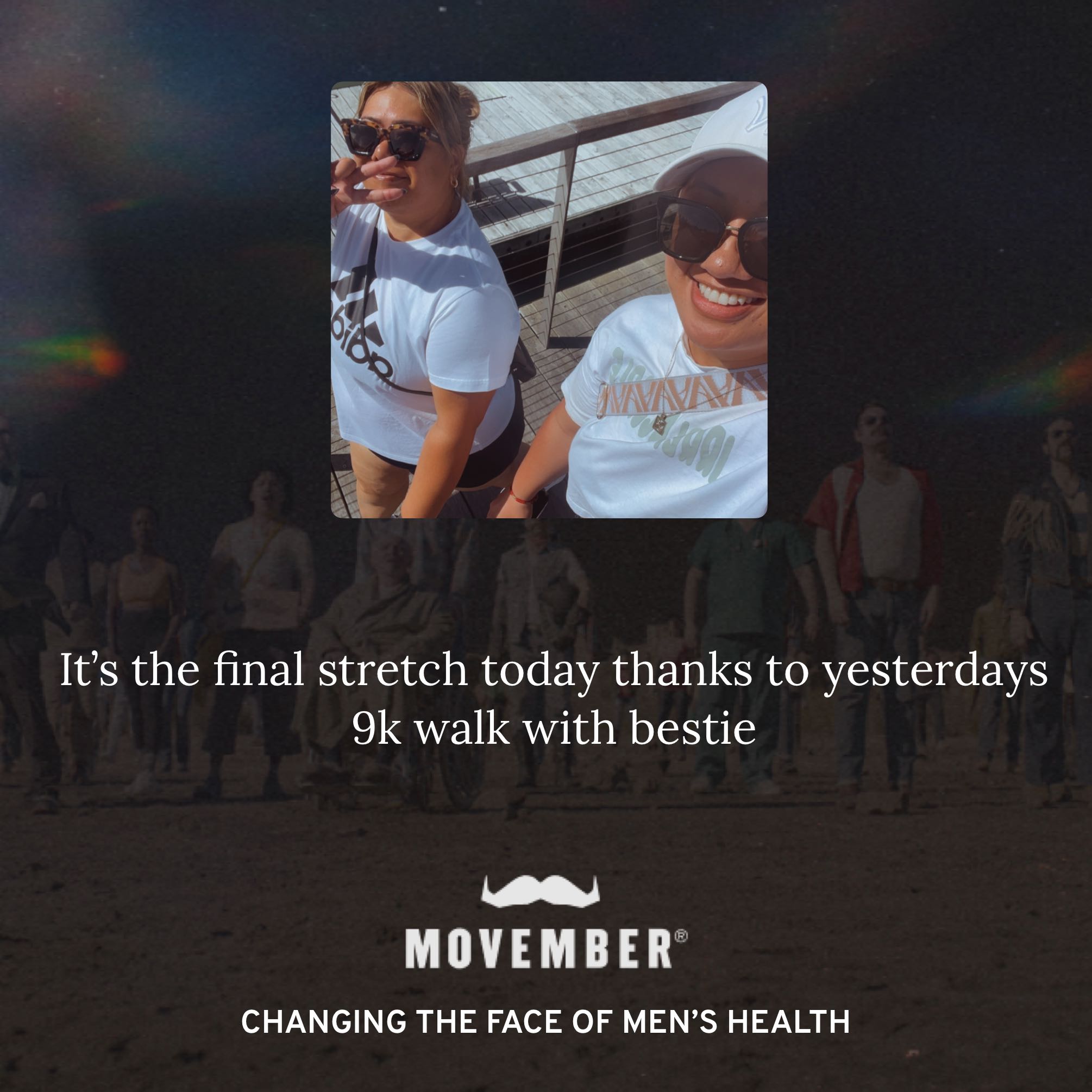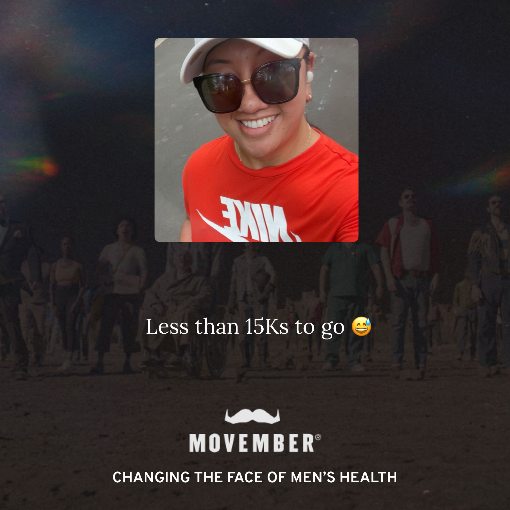 I'm moving 60km this Movember for the 60 men we lose each hour of every day.